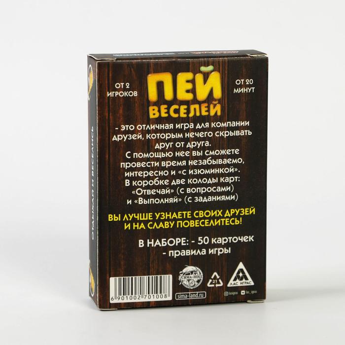 Купить игра для компании "пей веселей" 50 карт от 180 руб. с доставкой до пункта выдачи в Константиновске. Интернет магазин ДекаМаркет. Оплата при получении.